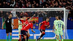تعرض فريق برشلونة لخسارته الأولى في بطولة الدوري الاسباني لكرة القدم “لا ليغا” هذا الموسم؛ بسقوطه الكبير 2/4 أمام مُضيفه أوساسونا، في المباراة التي جمعت الفريقين مساء اليوم السبت ، على أرضية ملعب “إل سادار”، ضمن الجولة الثامنة من المسابقة المحلية.