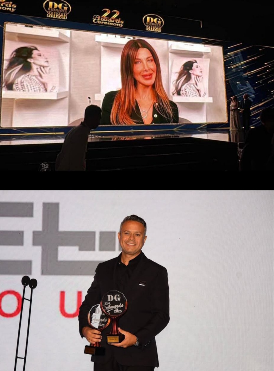 تسلم المنتج محمد حامد، جائزة الفنانة نانسي عجرم نيابة عنها، كأفضل مطربة عربية في حفل توزيع جوائز دير جيست.